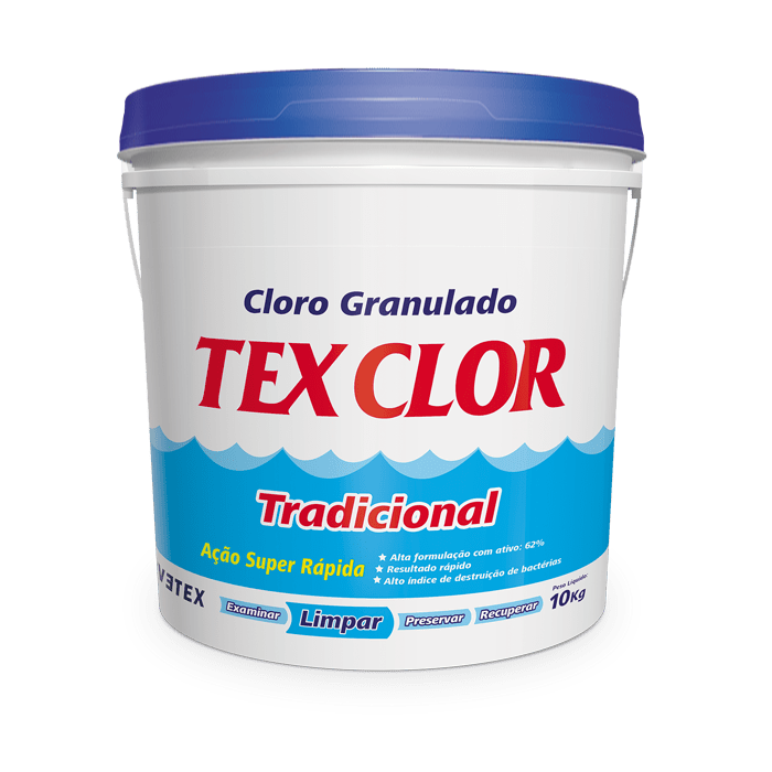 O TEX CLOR Tradicional é um cloro granulado de ação super rápida, indicado para o tratamento e desinfecção da água da piscina. Sua fórmula de alto desempenho atua na eliminação de bactérias, ajudando a manter a água limpa, cristalina e segura para uso.